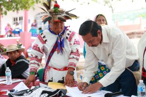 Ahí, como representante de la Trigésima Cuarta Legislatura sostuvo un diálogo respetuoso con los pueblos originarios de los estados de Jalisco, Durango y Nayarit, a quienes les cuestionó “cómo quieren participar en la construcción de las leyes, como organización, como persona, como comunitario, comunidad o como pueblo”.